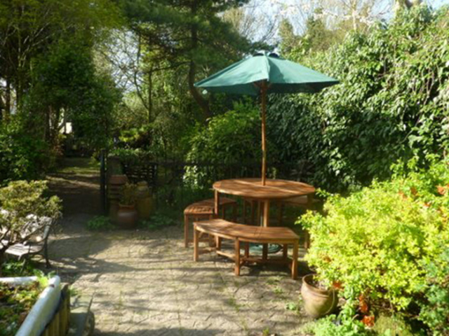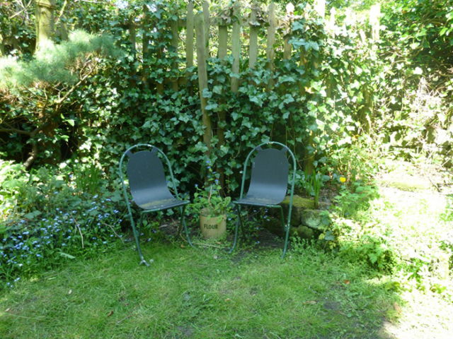 The conservatory at the Old Castle Inn looks down to a private, well stocked and good sized part walled garden with views of the castle and church. There is a stone seating area with a children’s sandpit.